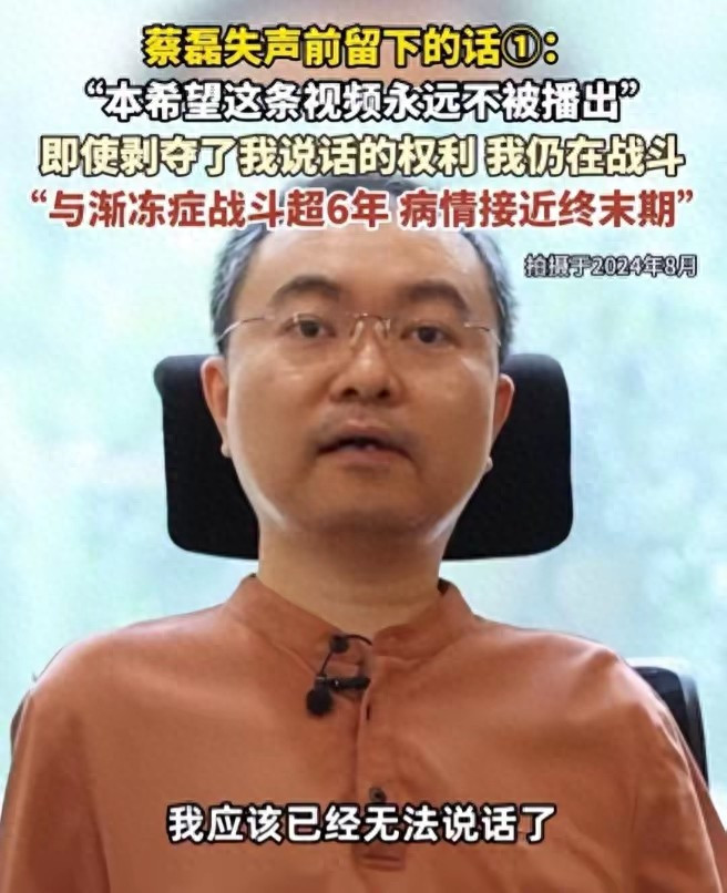 今天刷到蔡磊的视频,心里挺不是滋味,他是京东前高管,六年前查出渐冻症,医生说活不过五年,可他硬撑到了现在。